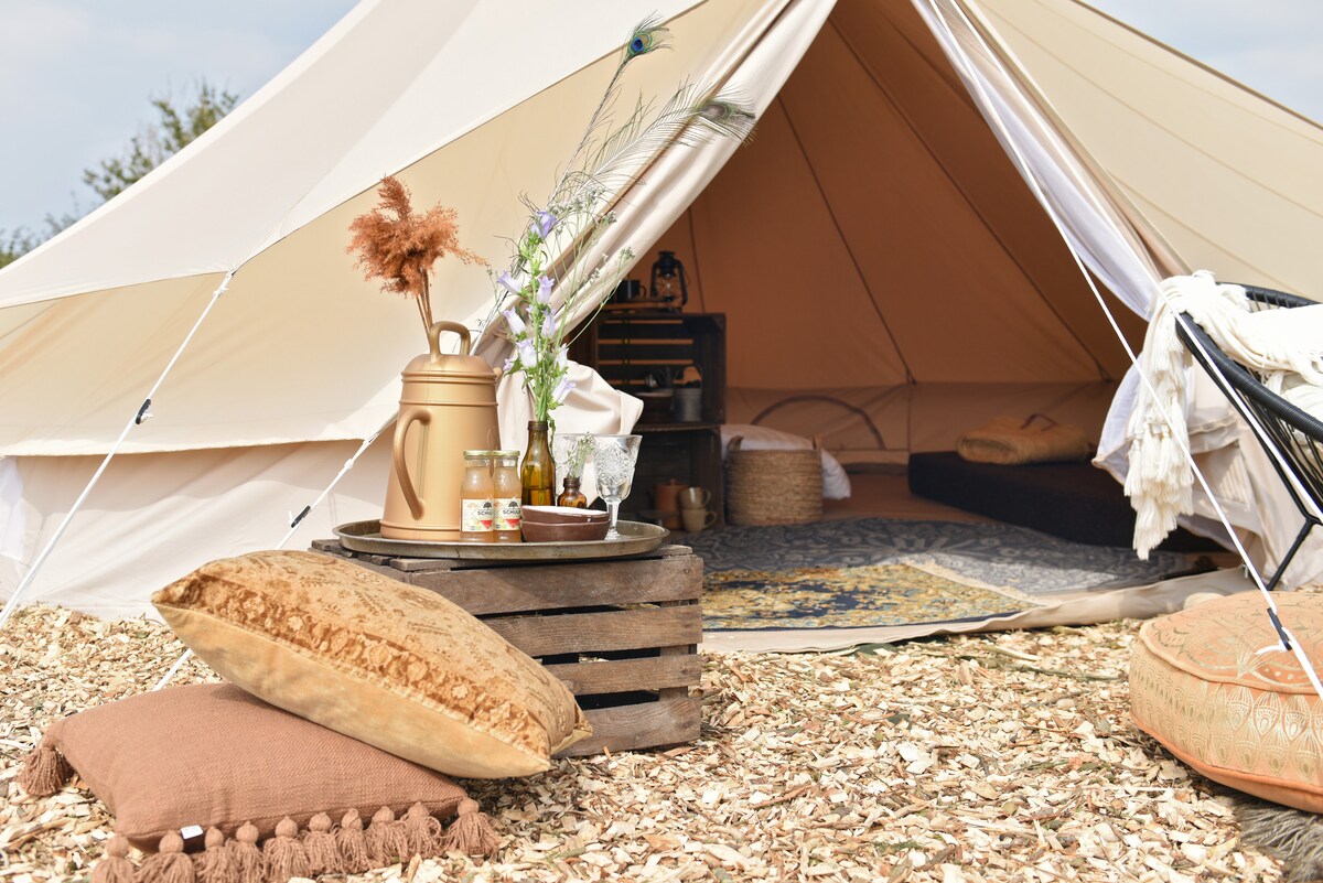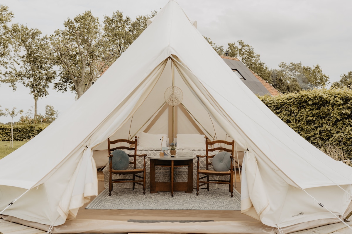 Vergeet de tijd, volg de schaduwen van het tentdoek, loop met je voeten door het gras, verdwijn in de sterrenhemel bij het kampvuur of relax in de hottub. Bij Understeboppe Glamping B&B in Friesland is het stiekem altijd een beetje vakantie. Niet zo gek als je bedenkt dat de Friese meren, Giethoorn, de Weerribben en de Drentse bossen, alle op 20 minuten rijden liggen. Je slaapt in één van onze twee hippe Bell tenten met comfortabele Auping bedden. Je deelt de badkamer met de twee andere gasten.