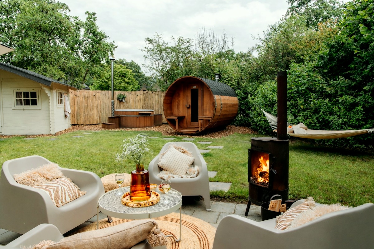 Ervaar rust en comfort in onze Scandinavian Luxury Retreat met privé hottub en sauna. Deze vrijstaande woning ligt aan een recreatieplas, omringd door weidse natuur. Binnen geniet je van een warm Scandinavisch interieur met oog voor detail en een sfeervolle houtkachel. Buiten wacht een zonnige tuin waar je in alle privacy ontspant in de houtgestookte hottub of sauna, of samen geniet bij de buitenhaard en barbecue. Perfect voor een ontspannen weekend, midweek escape of rustige workation.