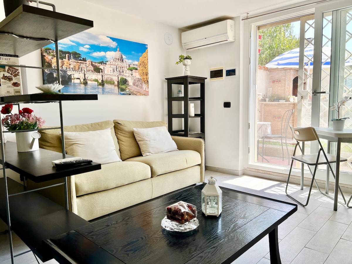Officially registered at Rome's Municipality with ID: CVN-003933-6 and at Regione Lazio with CIR (Registration ID): 058091-CAV-04900. Luxury architect-designed apartment, 1 mile to the highway and 8 miles to the Colosseum: garden, parking, children's playground, fireplace, A/C, Ultra Fast Fiber Internet (FTTH) , WiFi, satellite TV, Nespresso coffee maker! DISCOUNTED WEEKLY AND MONTHLY RATES