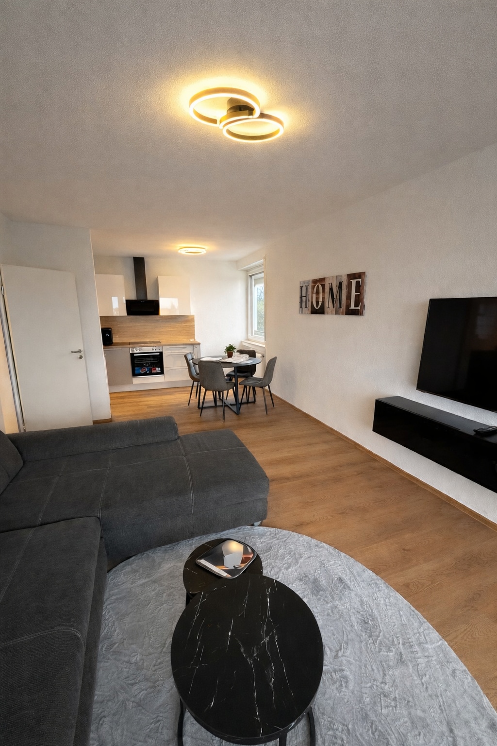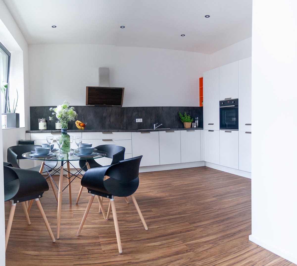 This luxurious (built 2018) city apartment entices with its central location comprehensive amenities. At 45 m2, the apartment offers floor to ceiling windows, hardwood floors, a high quality kitchen, a bathroom with a rain shower, and a cozy living room and separate bedroom. The main train station, public transportation, and countless restaurants and attractions are quickly and easily accessible by foot. Car can be parked in one of the nearby public parking garages.