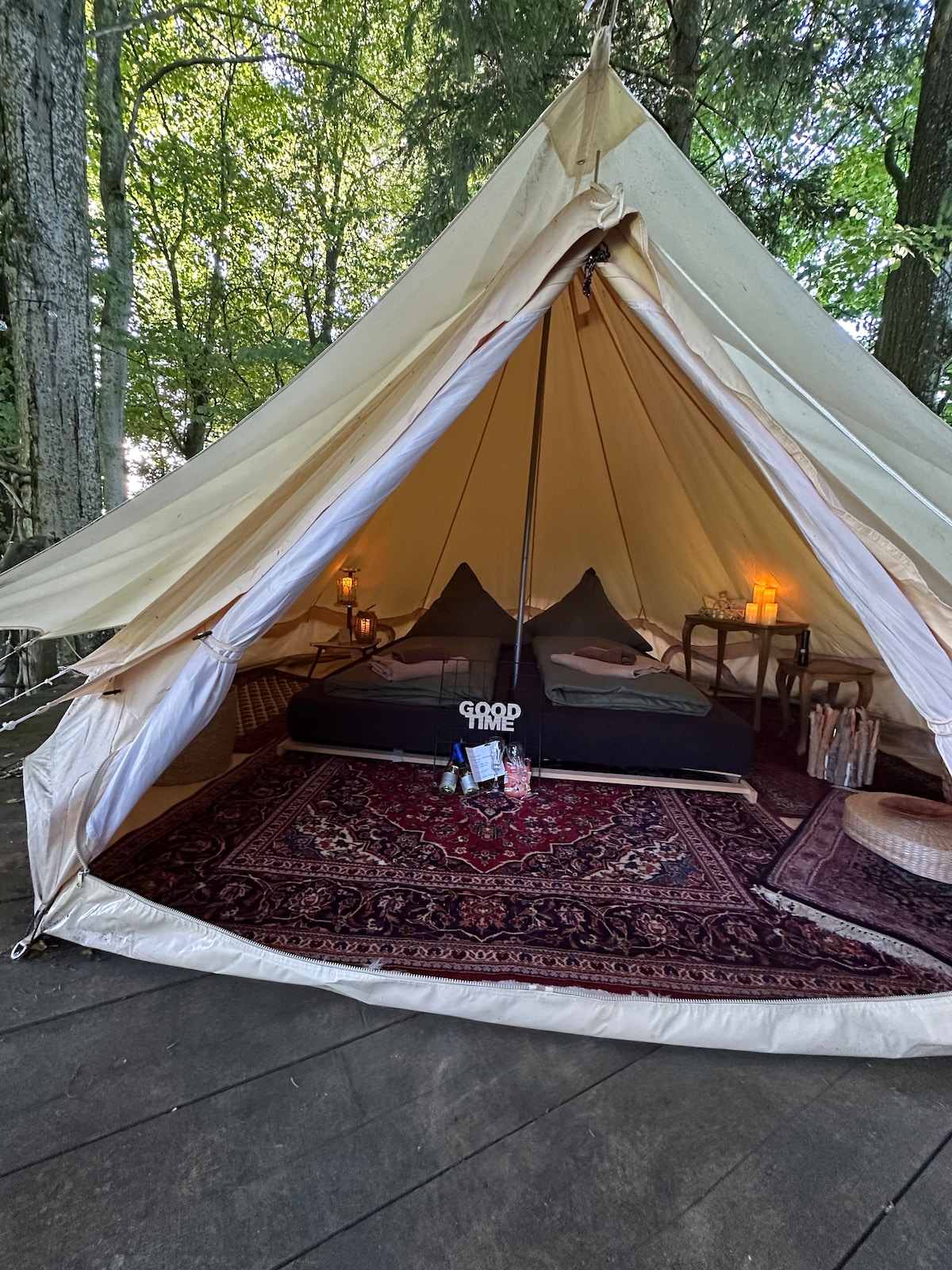 🌿 Naturzeit – Tauche ein in die Einfachheit des Lebens: Unser liebevoll eingerichtetes Rundzelt liegt auf einer Holzplattform in einem kleinen Waldstück, umgeben von Feldern, Bäumen, Wiesen und einem kleinen Bächlein. Hier geht es nicht um WLAN oder Strom – sondern um Ruhe, Naturverbundenheit und Entschleunigung. 💚 Ein Rückzugsort für alle, die entschleunigen, durchatmen und die Einfachheit genießen möchten