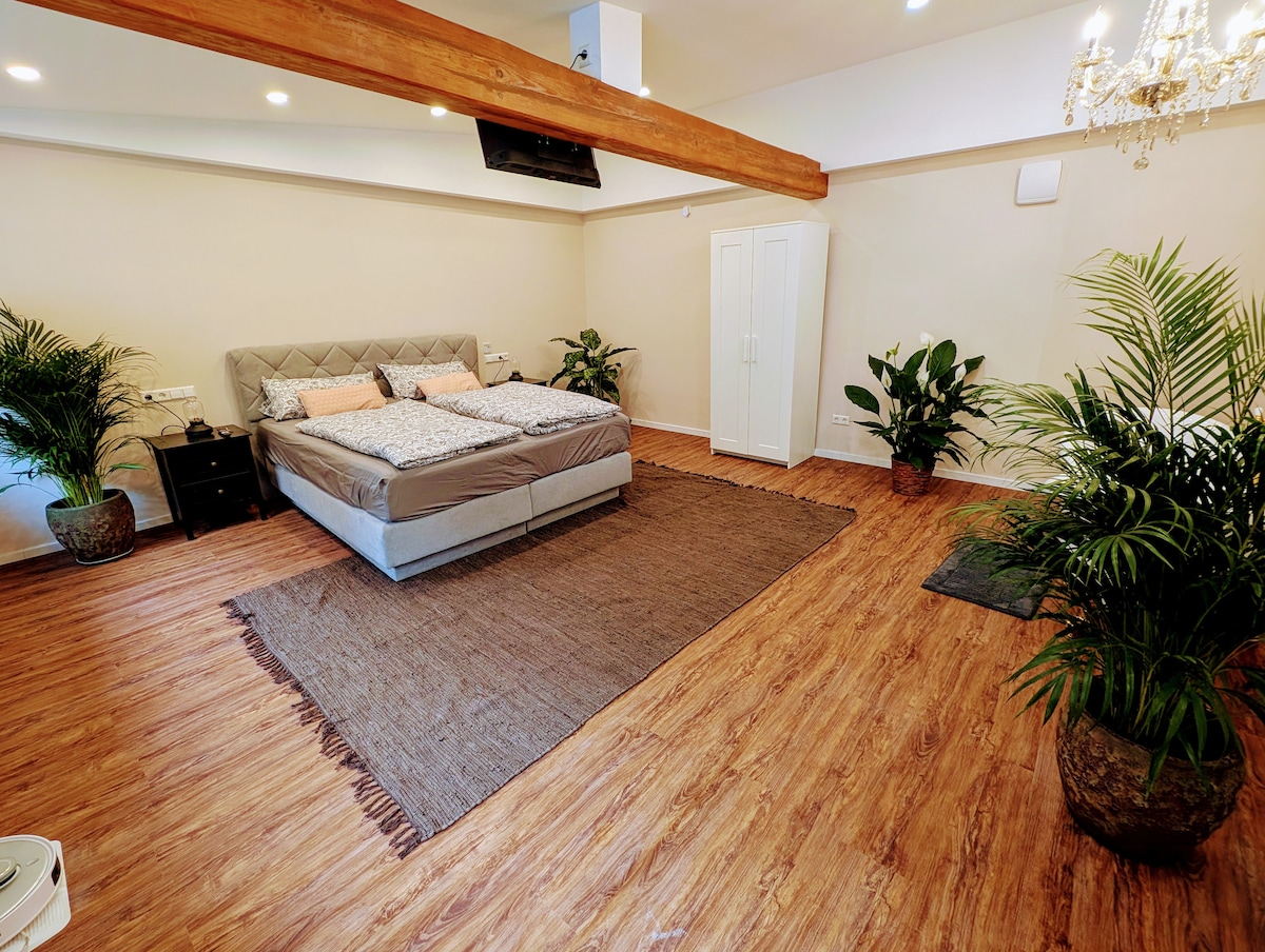 Entdecken Sie unser Noble House im Herzen von Ulm, das modernen Komfort mit stilvollem Design verbindet. Diese Großzügige Unterkunft bietet Ihnen alles, was Sie für einen unvergesslichen Aufenthalt benötigen. Fussbodenheizung, 4 k Fernseher Wohnzimmer HD Fernseher in allen Schlafzimmer Terasse mit Parkplatz Genießen Sie die Zentrale Lage, die Ihnen schnellen Zugang zu den besten Restaurants, Geschäften und Sehenswürdigkeiten Ulm bietet. Ideal für Paare die eine besonderen Aufenthalt suchen.