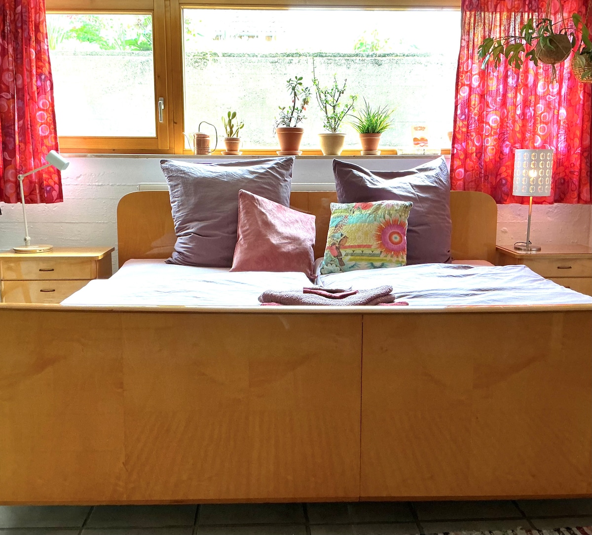 Accommodation "Bettina" for 1 to 3 People. For 1 Person a single bed in the living room. For 2 or 3 persons there´s an extra bedroom with a double bed 160/200cm available. A modern, light flooded, spacious and comfortabel attic flat. Living room with a single bed, a fully equipped kitchen. Bedroom and a bathroom . The flat is on the 3rd level in a private house. In Rheinstetten close to Karlsruhe. key compartment, free parking on the street. Garage for bycicles or bikes.