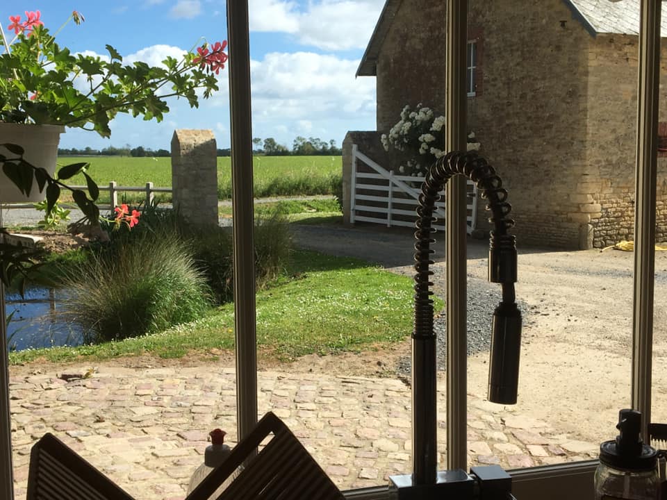 Attenant à la maison principale un logement de plein pied comprenant : un grand salon avec un lit une personne, une chambre avec un lit 140, une cuisine et une salle de bain avec douche et WC. Extérieur : une petite terrasse avec salon de jardin et barbecue. Espace dédié aux véhicules dans la cour intérieure close. La propriété se situe au bout d'un chemin privé. 1km 8 d'Isigny sur mer, tout commerce. 5km de Grandcamp-maisy. Proche des plages du débarquement Omaha beach... De Bayeux à Cherbourg.