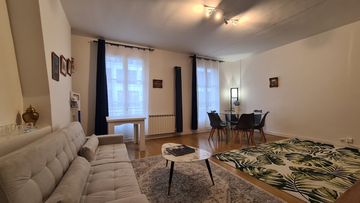 Large, quiet and bright apartment, one bedroom, large sitting room. full of charm and light, double exposure, on the 4th floor with lift. Ideally located in a prestigious district between the Arc de Triomphe and La Défense, 4' from the metro direct to Champs Elysées, Concorde, the Marais, Bastille.) 15' walk from Bois de Boulogne. Many shops and cafés, well-equipped kitchen. Speed Wifi, Netflix access, work space on demand. Ideal for a couple, or for a business stay. Welcome !