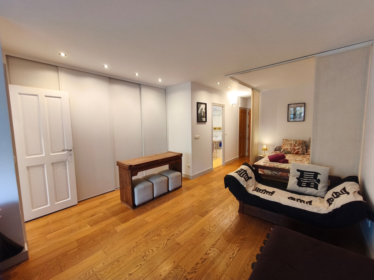 Beautiful studio in the heart of Neuilly-sur-Seine, fully renovated in 2025. Formerly a mews, nestled in a 1930s Art Deco house, it offers a peaceful and character-filled setting. Just steps from Paris, in one of its most elegant and exclusive neighborhoods, this guesthouse-style independant studio combines comfort, smart design and charm. Fully equipped kitchen, 160 cm bed, high-speed Wi-Fi, smart TV, bathtub, and leafy private patio. A refined cocoon for a calm, elegant and inspiring stay.