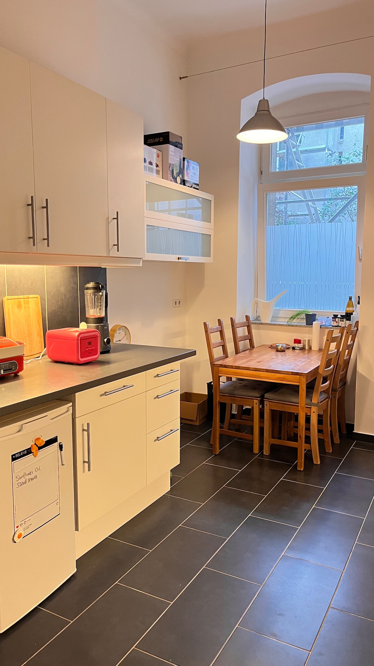 Bright and spacious apartment in the heart of Schillerkiez Neukölln. Enjoy your stay in a typical Berlin old building from the early 20th century, only five minutes away from Tempelhoferfeld. The apartment with modern bathroom and kitchen is located on the 4th floor (without elevator) and faces the street. With its west-facing windows, you can enjoy the beautiful sunset from the comfort of your sofa and watch the light spread through the living room.