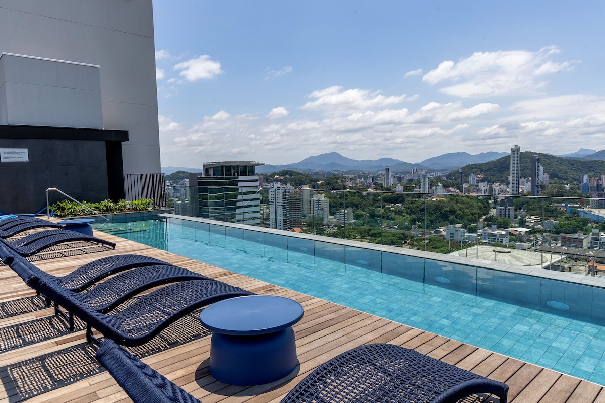 "Loft moderno e aconchegante, com vista panorâmica, ao lado da FURB. Ótima localização, perto do centro, Vila Germânica, mercado, farmácia e via gastronômica. Desfrute de piscina, coworking, academia, terraço, sala de jogos, bar e churrasqueira. Perfeito para uma estadia confortável e prática. "Curta uma experiência elegante neste lugar bem localizado. Loft novo, com decoração nova e aconchegante, feita com muito carinho para lhe receber!!