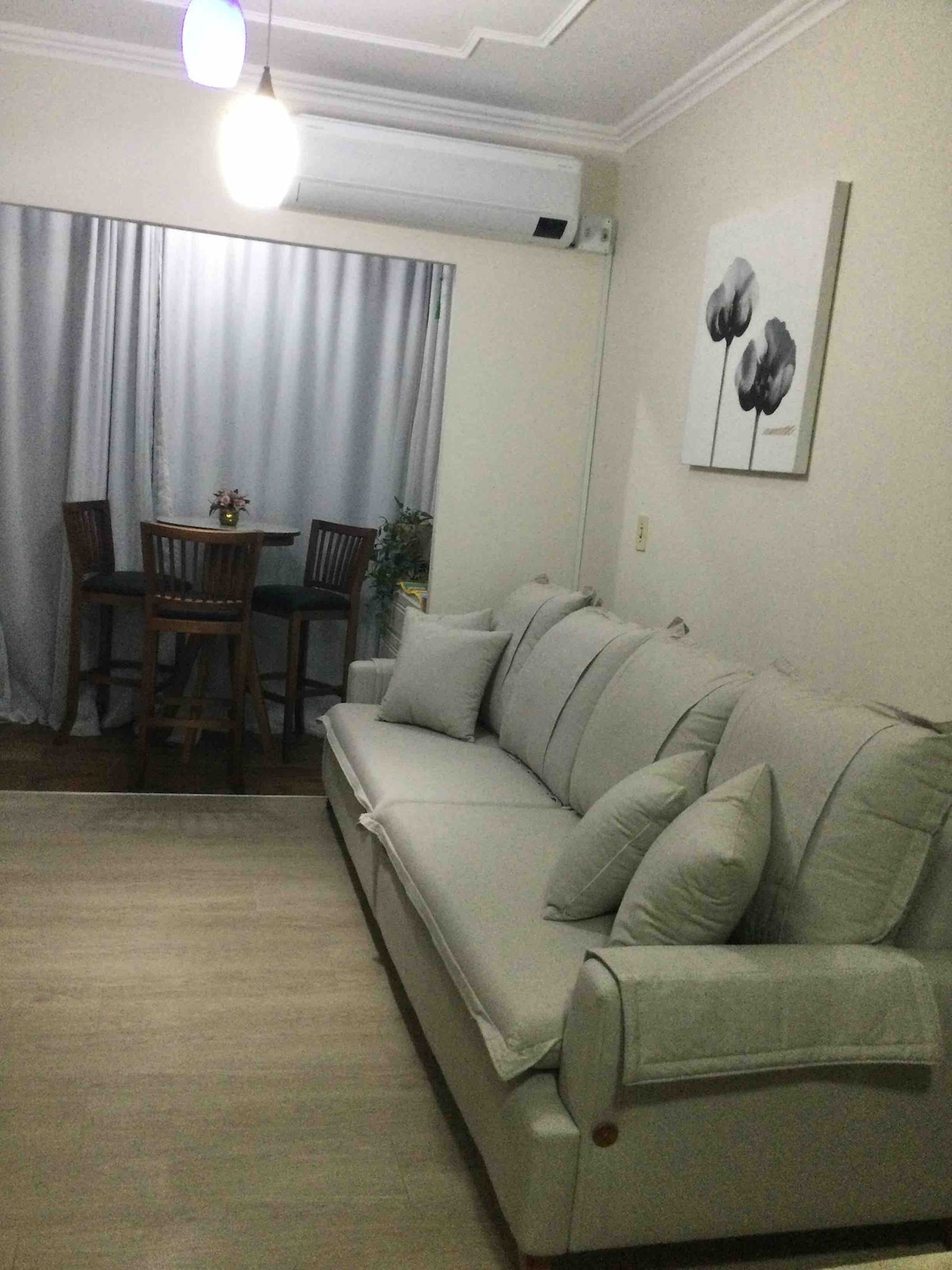 Charming and inviting, this apartment is located in the heart of Blumenau on a central, well-lit, and safe street. Just a short walk from Beira Rio, Rua XV, and 7 de Setembro, it's surrounded by restaurants, pubs, bakeries, a shopping mall, supermarkets, pharmacies, a gas station, and a pet shop. Perfect for couples, the apartment features secure covered parking and offers the ideal base to experience Blumenau in comfort, convenience, and tranquility.
