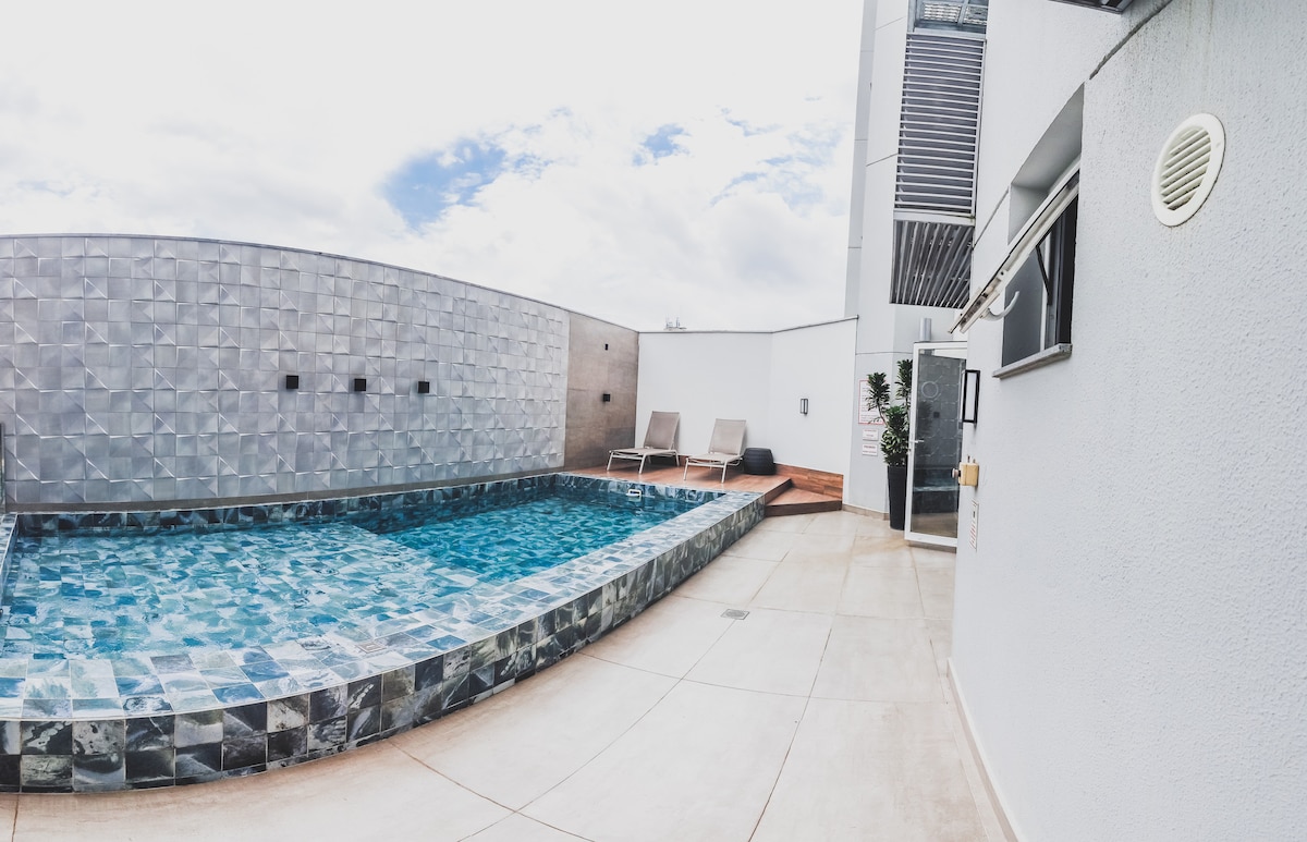 Localização privilegiada no centro de Blumenau, ao lado da FURB, com padarias, restaurantes e mercados. A 5 min da Vila Germânica. Loft completo com cozinha, ar-condicionado, TV e Wi-Fi. Condomínio com piscina rooftop (borda infinita), academia, coworking, pub, área de lazer e mercadinho. ⚡ Carregador para carro elétrico no prédio: uso sujeito a cadastro em horário comercial e disponibilidade; não é exclusivo da unidade.