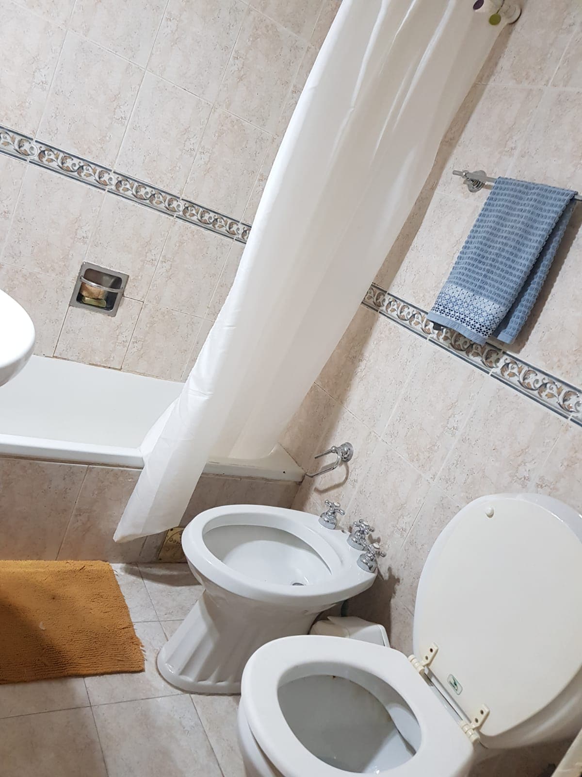 Departamento de 1 dormitorio en primer piso por escalera. Dormitorio con dos camas de 80 cm con colchón y somier, unibles a cama King, y aire acondicionado portátil. Living-comedor con sillón cama, mesa para 2, TV Smart, calefacción, persianas, cortinas y escritorio. Cocina a gas con desayunador, equipada y con acceso a terraza con lavarropas. Baño completo. Quincho en el edificio.