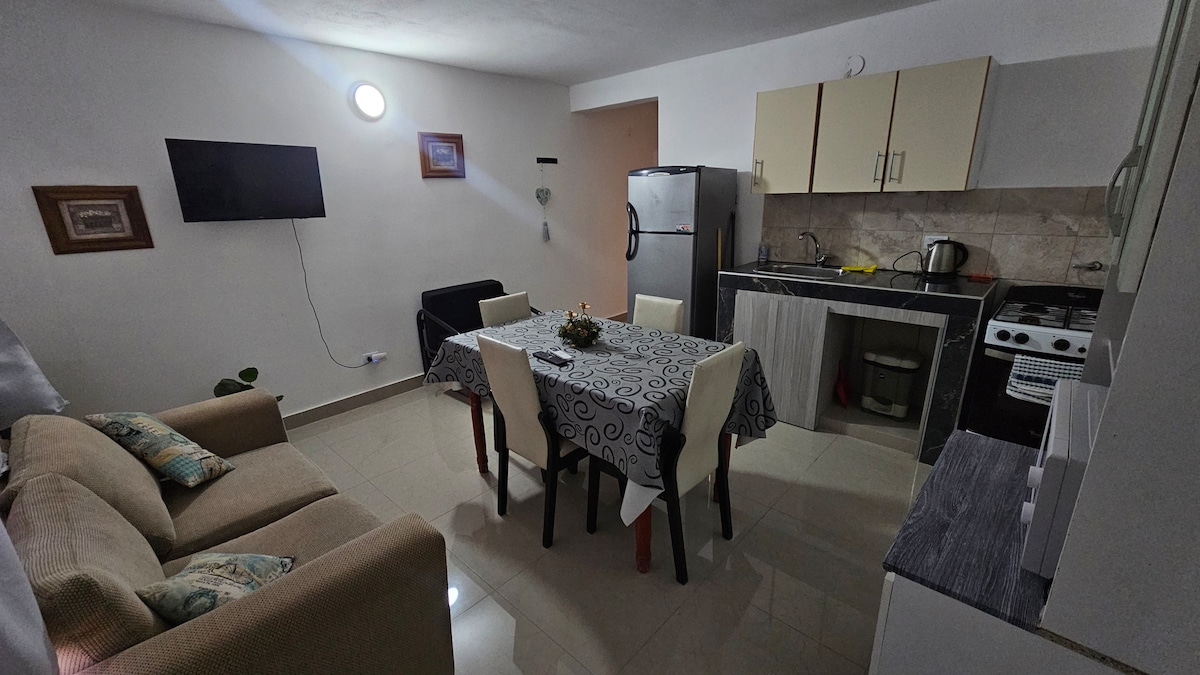 Rincón del Río is a cozy and fully equipped apartment in Neuquén Capital, located between Bélgica and Portugal streets. It features two bedrooms, a full kitchen, private bathroom, wood-burning stove, TV, WiFi, and free parking. Ideal for work trips or relaxing stays. Quiet area near the Limay River, with quick access to downtown and main roads. Bed linen and towels are included. We look forward to hosting you!