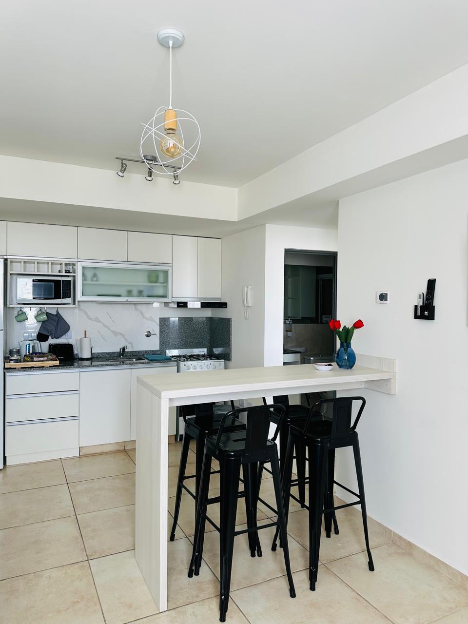 Ubicado en zona centrica de Nqn capital, fácil acceso a las rutas y estacionamiento cubierto en el mismo edificio Torre DOMO a estrenar. Diseñado con equipamiento premium para un buen descanso y/o trabajo. Buena iluminación, cocina completa con lavarropas. Cuenta con cama Queen de calidad, TV Samsung 50" con servicio WIFI, aire acondicionado y caldera. La cocina cuenta con Microondas, pava eléctrica, tostadora, cafetera y vajilla completa.
