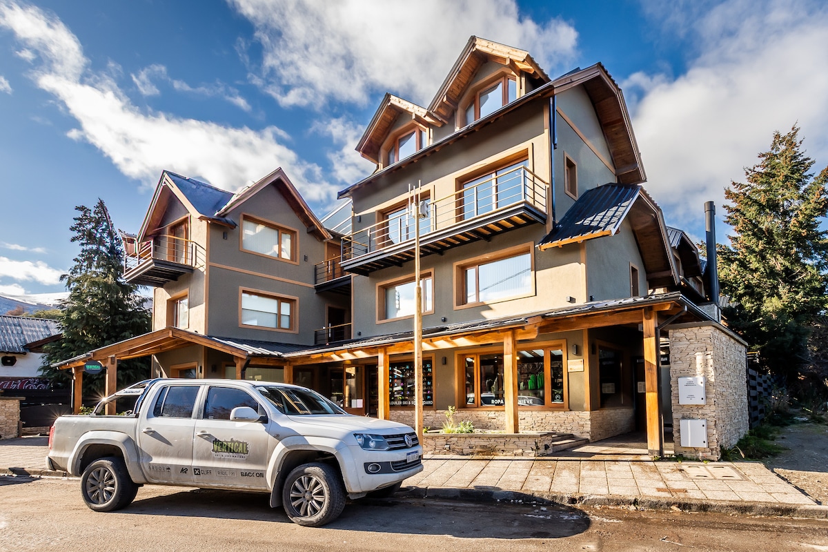 Moderno Monoambiente en el centro de San Martin de los Andes. Totalmente equipado con equipamiento de cocina, toallas, ropa de cama y todo lo necesario para disfrutar de tu estadia. El dpto esta ubicado a 2 cuadras del sector comercial por lo que permite tener total tranquilidad pero estar facil y rápidamente en el sector de restaurantes, negocios y supermercados. Eventualmente, en el dpto. puede ubicarse una tercera cama en un sector superior para un niño/a, que se evalua en cada caso.