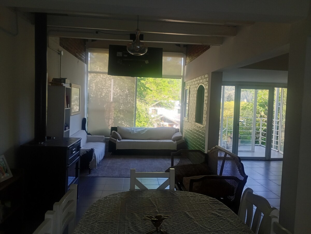 Disfruta de un retiro tranquilo en nuestro monoambiente acogedor ubicado en el hermoso bosque de San Martín de los Andes. Este espacio es ideal para aquellos que quieren desconectarse de la ciudad y disfrutar de la naturaleza. El monoambiente cuenta con una estufa a leña y aire acondicionado para calefaccionar que crea un ambiente cálido. Algunos días de invierno, el bosque se transforma por la nieve, lo que es ideal para disfrutarla en familia o con amistades.