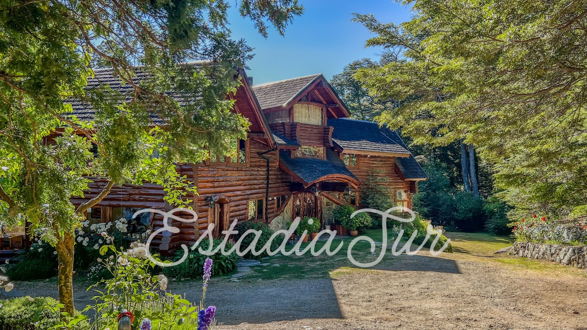 Casa construida sobre una loma, excepcional vista al lago Nahuel Huapi, a escasa distancia de Ruta 40, a unos 2.8 km. del centro de la Villa. Todos sus ambientes con vista panorámica. Construcción moderna, amoblamiento y ambientación de diseño. Monitoreo por alarma / House built on steep slope, near Route 40, distant 2.8 km. to commercial area. Outstanding view to lake Nahuel Huapi. Panoramic view from all rooms & living areas. Modern construction, design furniture and -setting. Alarm monitored.