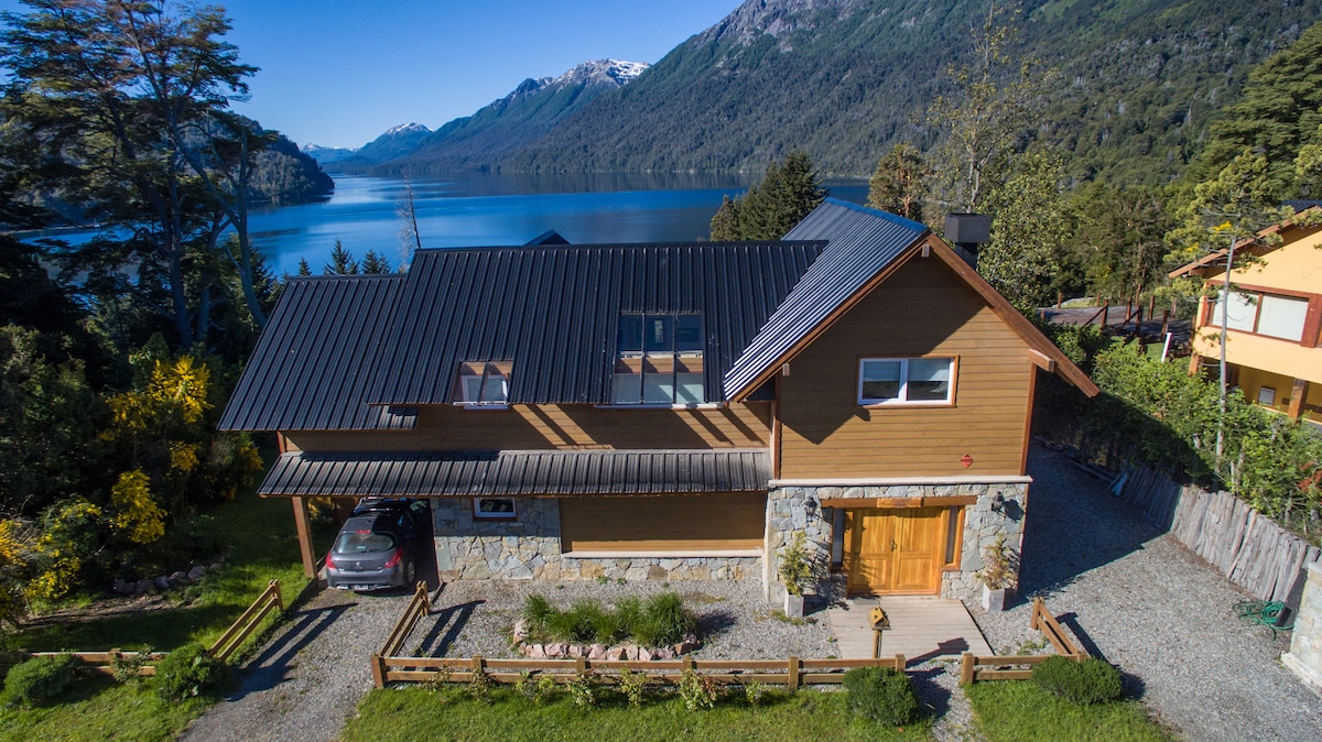 Moderna y practica casa de Montaña enclavada entre los lagos mas azules de la Argentina. Con vistas panoramicas a los cerros Bayo, Inacayal y Falso Belvedere e impresionante al majestuoso lago Correntoso