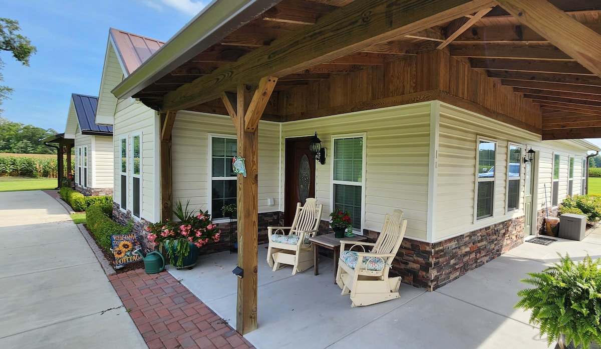 Enjoy this quiet 2 bed 2 bath house, a standalone home on the 2.7 acre historic Scarborough House Resort. Relax in this modern home with large bedrooms, smart TVs, full kitchen to bring out your inner chef, wifi, office nook, access to the pool and onsite gym. Enjoy the firepit with other guests staying elsewhere on property. See deer in the distance or play fetch with our Goldendoodle. Owners live in big house on site. 15 min off I95, 20-30 min from Wilson, Greenville, Rocky Mount.