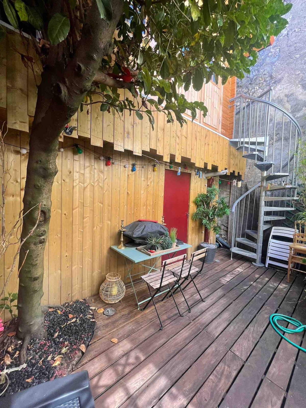 Pour une parenthèse détente en couple ou entre amis aux portes de Paris. Nous mettons à votre disposition une maison individuelle avec une place de parking sécurisée une cuisine indépendante équipée, un salon avec smart tv, un jacuzzi d'exception sur mesure, un sauna finlandais ainsi qu’une chambre avec lit queen size matelas d’hôtellerie, placard de rangement et smart tv. La maison Hanaa dispose également d’une terrasse avec salon d’extérieur et d’un jardin. Le tout avec un accès Wifi.