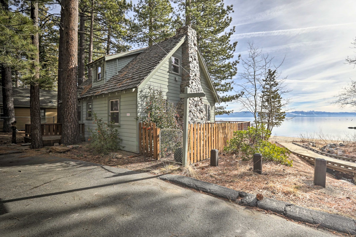 This exquisite stone cottage, constructed in 1939 using rock sourced from the Tahoe basin, offers a unique blend of historical allure and modern comfort. Amenities include exclusive access to Tahoe Park’s private HOA beach and lakefront park, a wood-burning fireplace, and a private level 2 EV charger (fees apply). The cottage is central to all West Shore amenities, including trails, markets, and dining. **Please note the majority of Tahoe homes, including this cottage, do not have AC.**