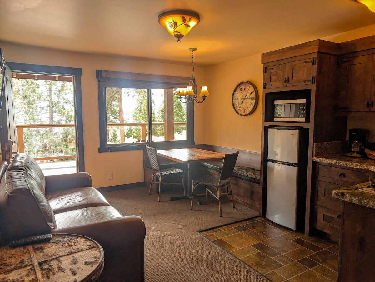 This quaint studio at Mother Nature's Inn historically functioned as an innkeeper's residence. In more recent years it has been a friends & family suite, utilized as the perfect staging area for skiing, mountain biking & playing at the lake. Now all guests can experience this hidden gem. The kitchen, sofa, dining table, & bunk beds provide guests with more comforts than a standard hotel room. Adventure lovers are delighted by the authentic art & mountain décor adorning the studio. Dog friendly.