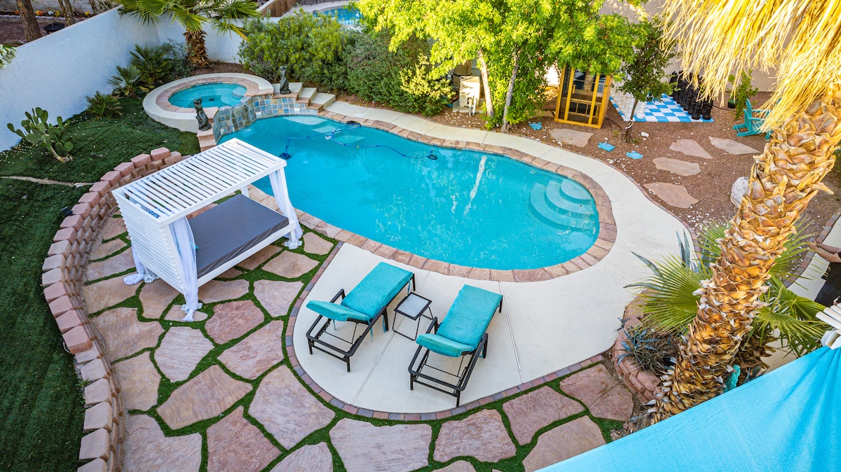 拉斯维加斯梦幻4卧室泳池/水疗/游戏| 5分钟到大道