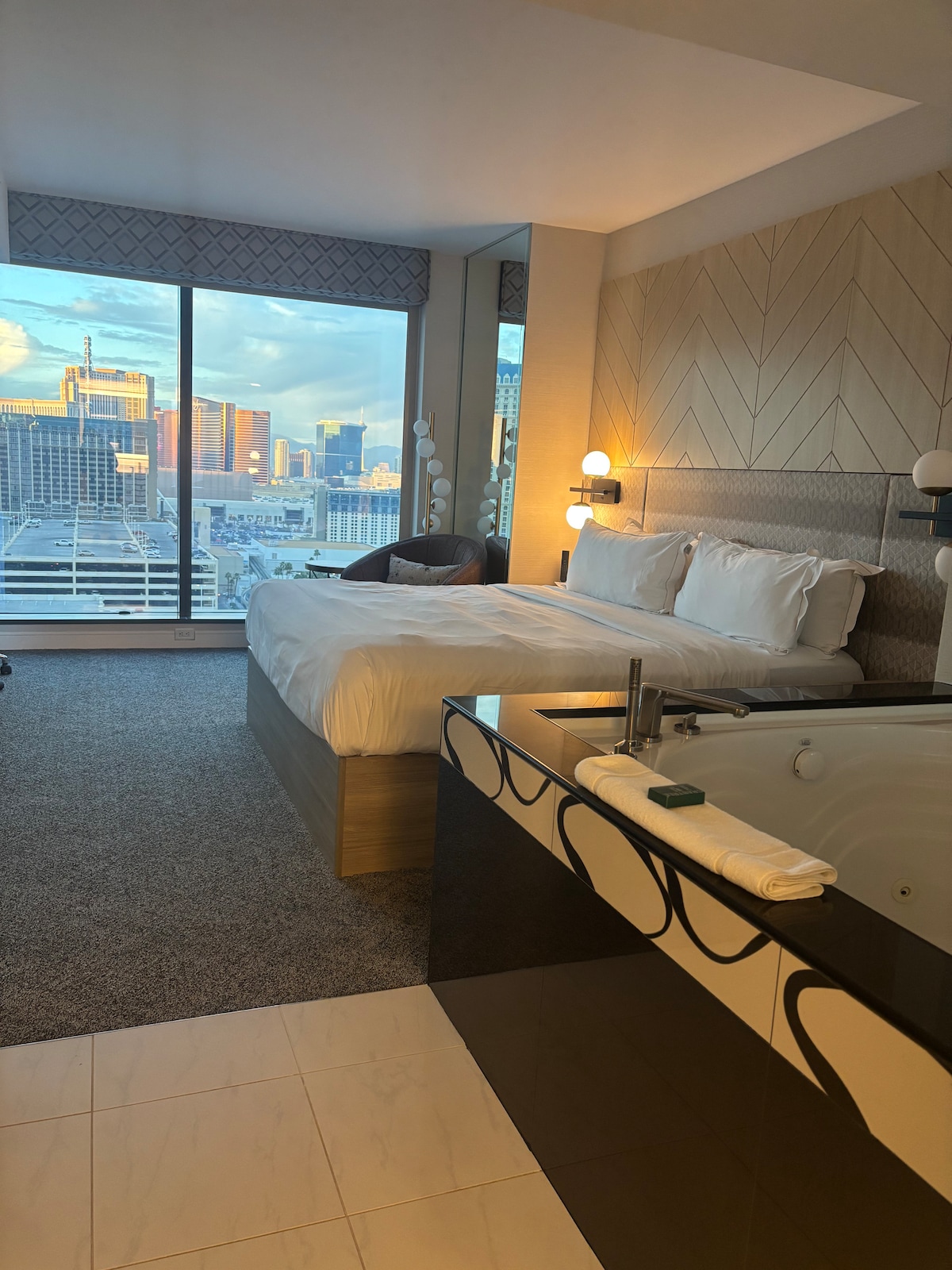 Experience Las Vegas from the luxurious suite, situated adjacent to the vibrant central strip, providing walking access to shops, restaurants & various entertainment. Adjacent Planet Hollywood Casino and its 170+ Miracle Mile Shops and 19 restaurants are perfect scenes for the start of your adventure. Ideal blend of luxury comfort & a rich amenity list is there to satisfy your every need. ✔ HD Home Theater Projector ✔ Oversized Jacuzzi Tub ✔ Open Design Living Area ✔ Floor to Ceiling Windows
