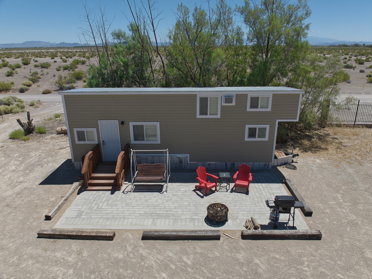 We have a unique tiny home located in Sandy Valley NV. One hour outside south Las Vegas off US 15. This is one of two tiny home on a dude ranch with horseback riding, cattle drives and rodeo events ( When available ) Search Sandy Valley Ranch. Come stay at our beautiful desert hideaway. Enjoy the tranquility of the Mojave Desert and gaze at the sea of stars. We are near Death Valley, Tecopa hotsprings and GoodSprings home of the famous Pioneer Saloon.