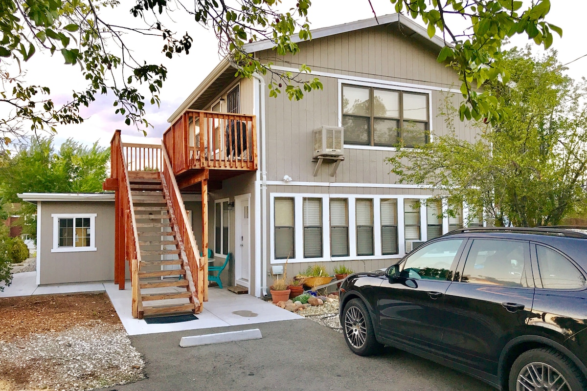 Luxury LOFT near Midtown! Completely remodeled and ready for a clean, comfortable getaway. Everything is new, bed, furniture, linens, dishes; really— everything! Upstairs unit has great views of the surrounding neighborhood with a deck for outdoor relaxing. Out-door picnic area also available. Fresh ground coffee, and more! With a walk score of 89, the LOFT is conveniently located in the Old Southwest - one of the most sought after neighborhoods in Reno - an easy walk or bike ride to Midtown!