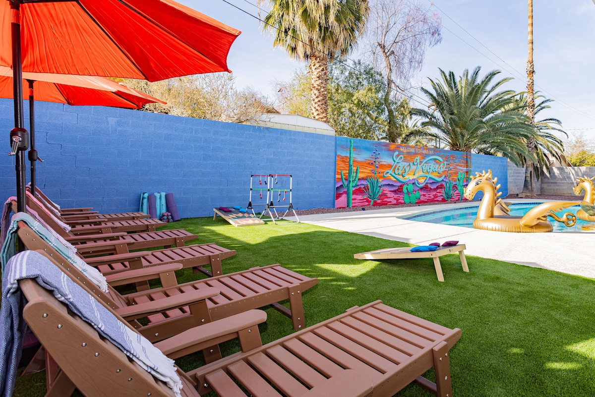拉斯维加斯氛围!6张床、泳池和游戏、壁画,靠近赌城大道!