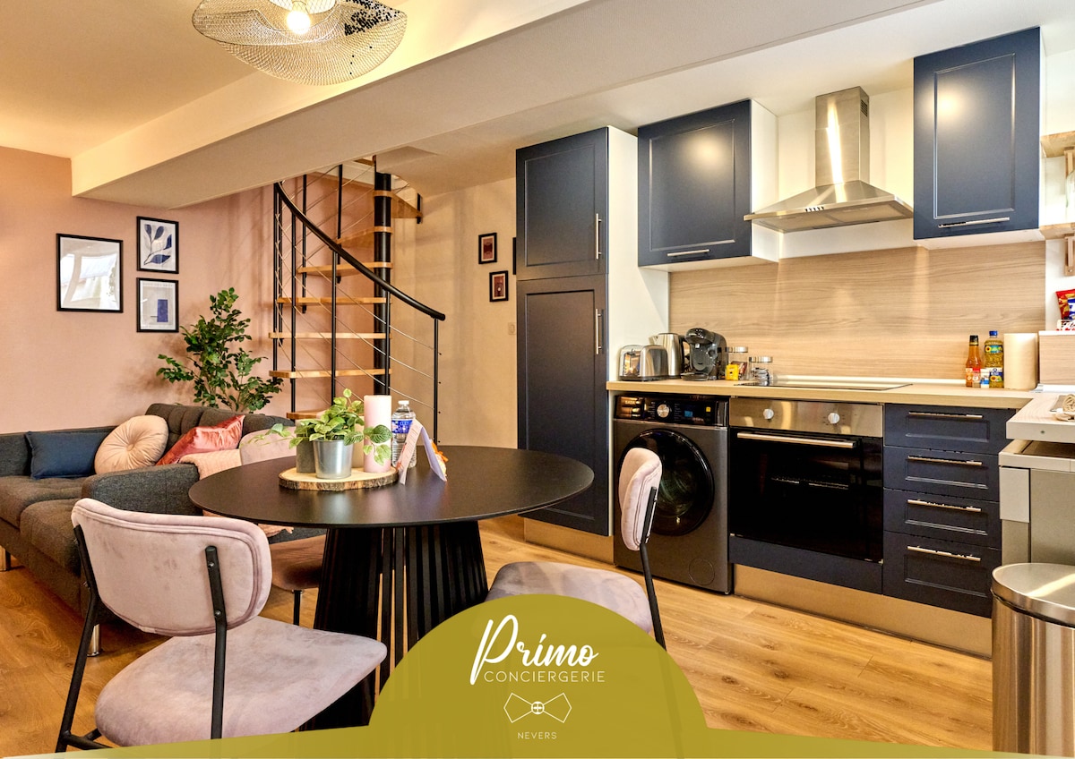 A 10 mn à pied de la gare, de l'IFSI, l'INKUB et la piscine. Proche de L'INSERR (6 mn en voiture). A 15 mn à pied du centre ville, dans une petite impasse, ce ministudio dispose d'une entrée privée et d'une kitchenette avec frigo, micro-onde et plaques de cuisson ; salle d'eau : lavabo, douche et WC privés. Literie neuve. Vous êtes autonome! Guide conférencière, je vous informe sur le patrimoine de Nevers et ses environs, les visites guidées, mes restaurants préférés... Bienvenue à tous !