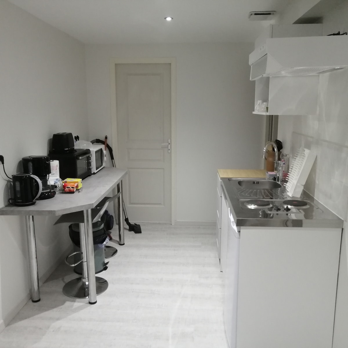 Non fumeurs, espace extérieur abrité dédié. Le studio est équipé d'une kitchinette comprenant un frigo, un micro onde, un grille pain, une boulloire, une cafetière (capsule starbucks) le premier café (thé) vous est offert, un minimum de vaisselle et un évier. Vous disposez du wi-fi et d'une télé connectée 80cm. Pour 15€ de plus accés au salon, salle à manger et cuisine tout équipée. N'hesitez pas à demander tout renseignements.
