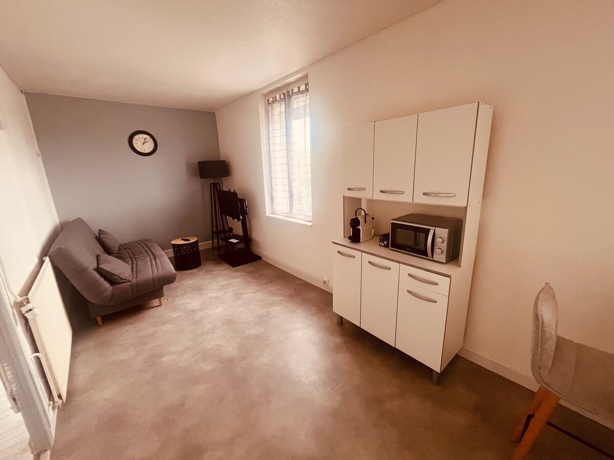Profité un logement élégant, situé en centre ville de Gien. - Studio 20m2 entièrement rénové: - Disposant d'un séjour, Télévision, Table base escamotable ,Table pour manger ou bureau, avec un petit canapé 2 places. - Un coin nuit avec un lit double de 140 x 190 d'une penderie. - Une salle de bain - Cuisine entièrement équipé Plaque gaz deux feux, four, micro onde, hotte, frigo cafetière ,bouilloire..) avec vue sur la Loire - Parking gratuit dans la rue - wifi fibre