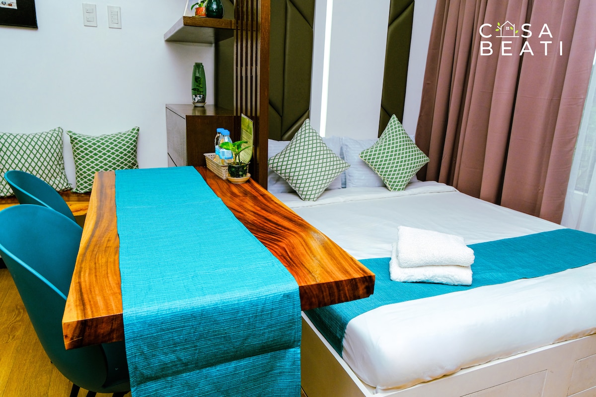 Have fun at this stylish place,centrally-located just in front of S&R Shopping Mall .Elite Escapes is a Studio Condo Unit with a mini Bar Island suited for a small number of guests.This is also a family friendly unit that invites below 5y/o Kids to join their parents during their staycation.The unit is also suitable for students, businessmen, Entrepreneur,visitors and travellers around the world who would like to work or study away from home while enjoying and relaxing in a busy City.