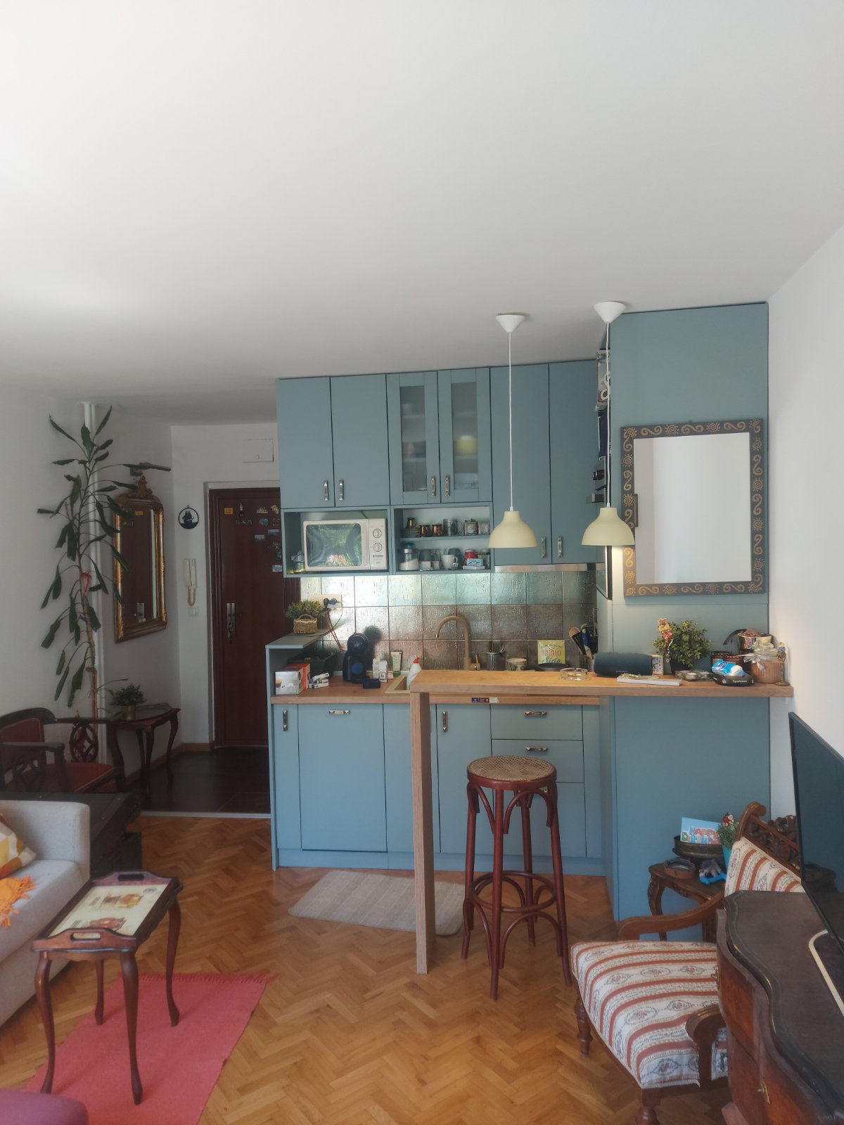This beautiful open-space apartment with a garden view, located just 20min away from the city center, offers a quite bit of heaven where you can kick back and relax with your family and friends. The garden is a wonderful space for smaller gatherings (up to 15 people), BBQing in the sun, or just enjoying the relaxing breeze and sounds of the Zvezdara forest.