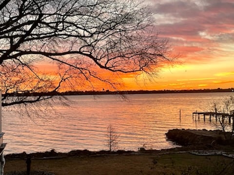There is access to the river and shared beach on the property. Kayak and paddle boards available to use after signing a 'release form'. Enjoy a beautiful sunrise or have a bonfire at night on the beach and watch the moon rise. Please be aware that broken glass can wash up from the river, so bring water shoes. The river is approximately 150 yard walk down a mild sloping yard.