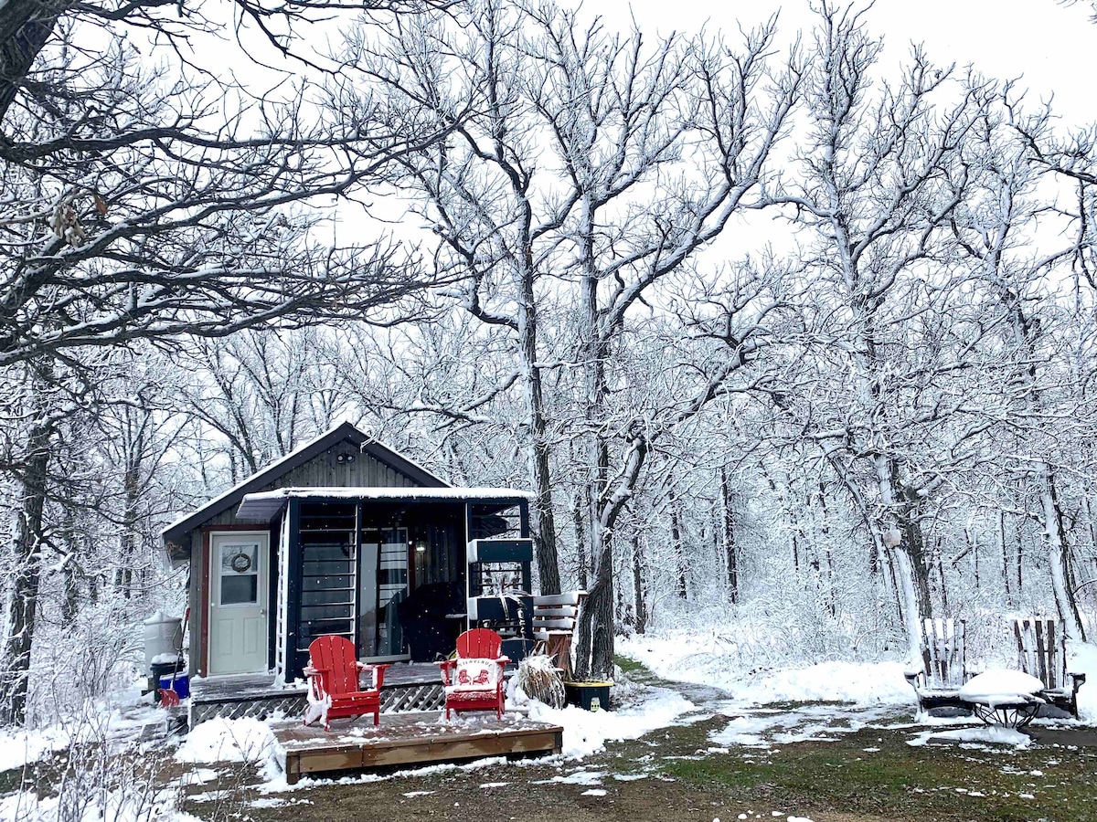 Reconnect with nature at this unforgettable escape. This cozy treehouse is perfect for a getaway just 30 minutes from Winnipeg. The one level bedroom is surrounded by a wrap around deck overlooking the river. (bathroom on property 100 meters away) This space is the perfect place to rest, create and rejuvenate while maintaining a space to clear your mind. Finish your day and canoe along the river while watching wildlife or relax with a bon fire underneath a canopy of stars.