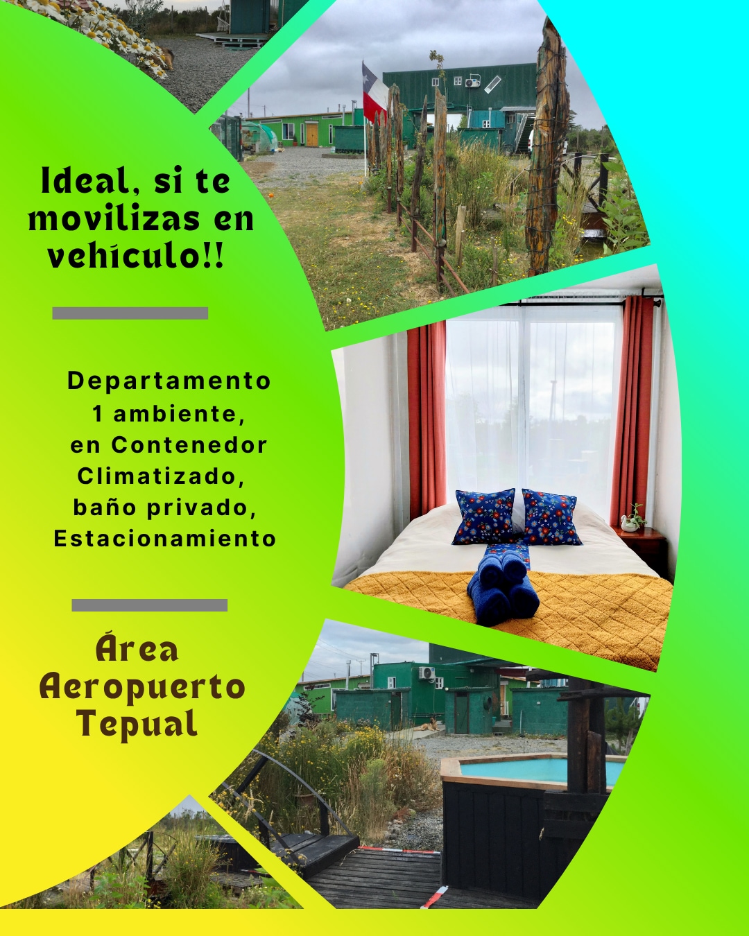 Si estas trabajando, en el área de Aeropuerto Tepual. Viajando sol@ o simplemente te quieres Relajar con tu pareja en una escapada única y tranquila. Te ofrecemos alojamiento, en un hermoso departamento en contenedor: Con baño privado, agua caliente, toallas, aire acondicionado, secador de pelo, desayuno incluído, cámaras de seguridad en áreas comunes. Servicio adicional de: Tinaja hidromasaje, lavandería, puedes lavar tú vehículo, alimentación (cena, almuerzo), Traslados según disponibilidad.