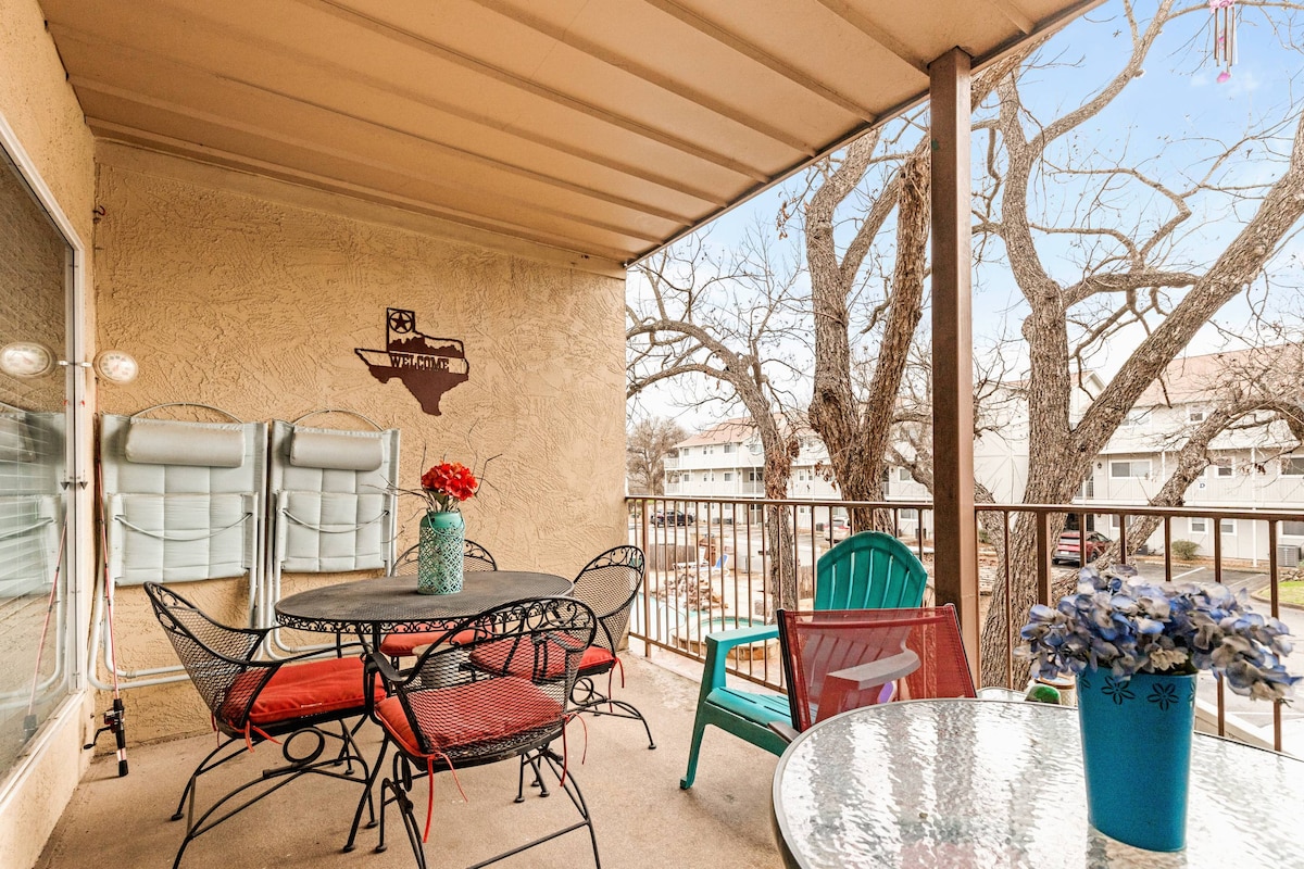Escap'Inn presents The Bandit. Stay at this stylish condo in New Braunfels; its amenities and prime location will surely make it hard to resist. Not only does it include a well-stocked kitchen and private balcony, but there are also pool access and communal grilling areas, so you do not have to worry about missing out on summer fun; within 15 minutes you can find yourself at the local water park or floating down the river. Book your getaway now!