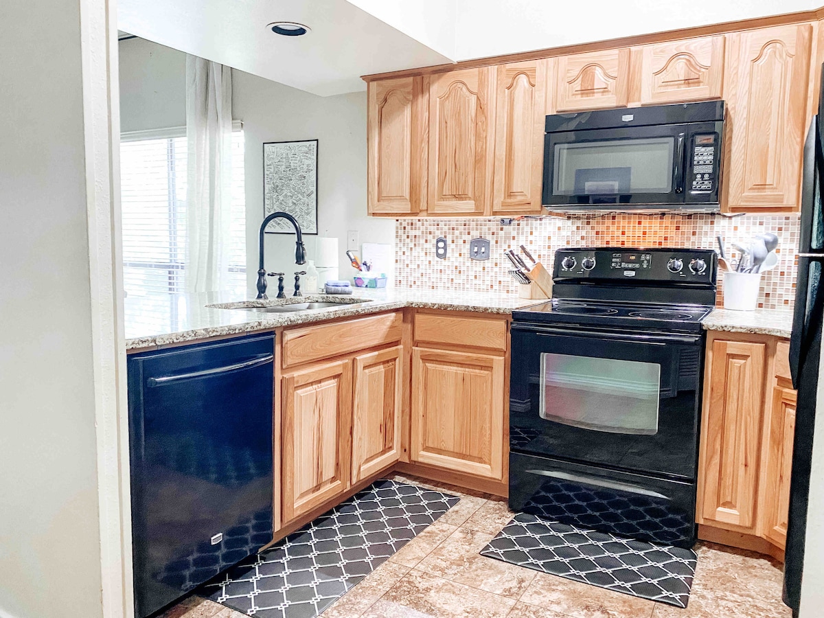 Escap'Inn presents The Bandit. Stay at this stylish condo in New Braunfels; its amenities and prime location will surely make it hard to resist. Not only does it include a well-stocked kitchen and private balcony, but there are also pool access and communal grilling areas, so you do not have to worry about missing out on summer fun; within 15 minutes you can find yourself at the local water park or floating down the river. Book your getaway now!