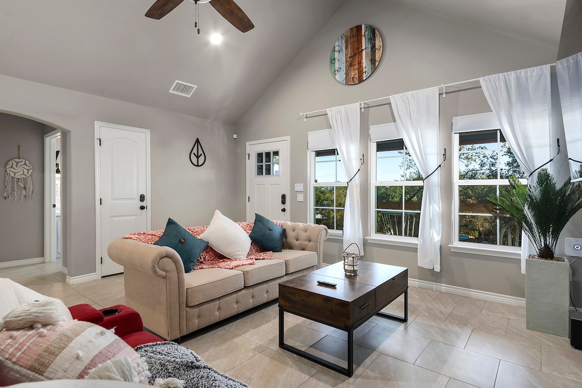 😍 Top 1% of all homes on Airbnb! Planning a relaxing getaway with family and friends, or maybe the most epic girls trip? This house isn’t just a place to stay, it’s an experience! Million dollar views, heated pool (additional fee), spa, Hill Country’s largest outdoor net bed, yard games, arcade, and fully stocked kitchen and coffee bar await you! * Must be 25 or older to book * Strict no party rules here. Peaceful environment must be respected *Pool can be heated for additional $200/night