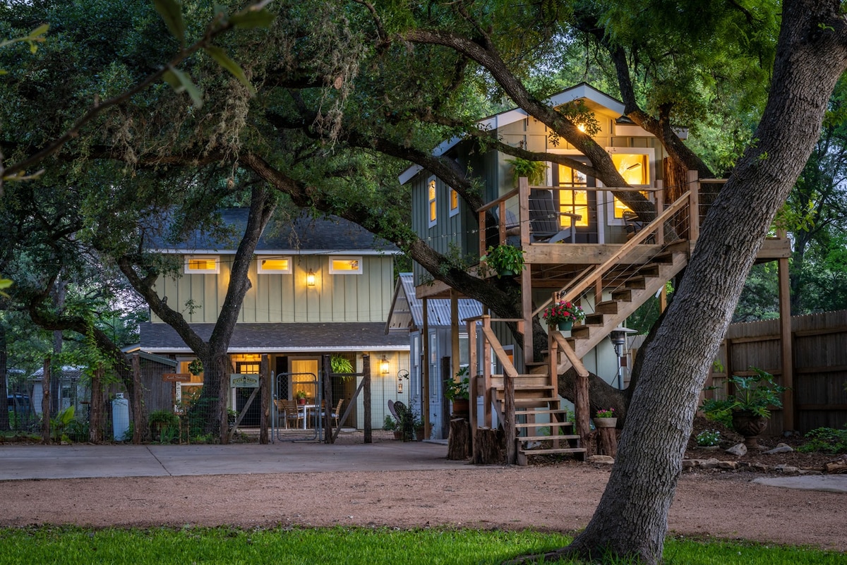 Welcome to River Haven Treehouse! This is a custom build treehouse for 2 nestled under a canopy of oak trees & located within walking distance of historic Gruene. This tree house offers a cozy, romantic retreat, complete with a bathtub & firepit! Sit and enjoy your morning coffee outside on the deck as you may be able to catch a peak at the deer. In the afternoon, head off to cool off by the river on the Guadalupe! Enjoy live music at Gruene Hall...only 1miles from the property.