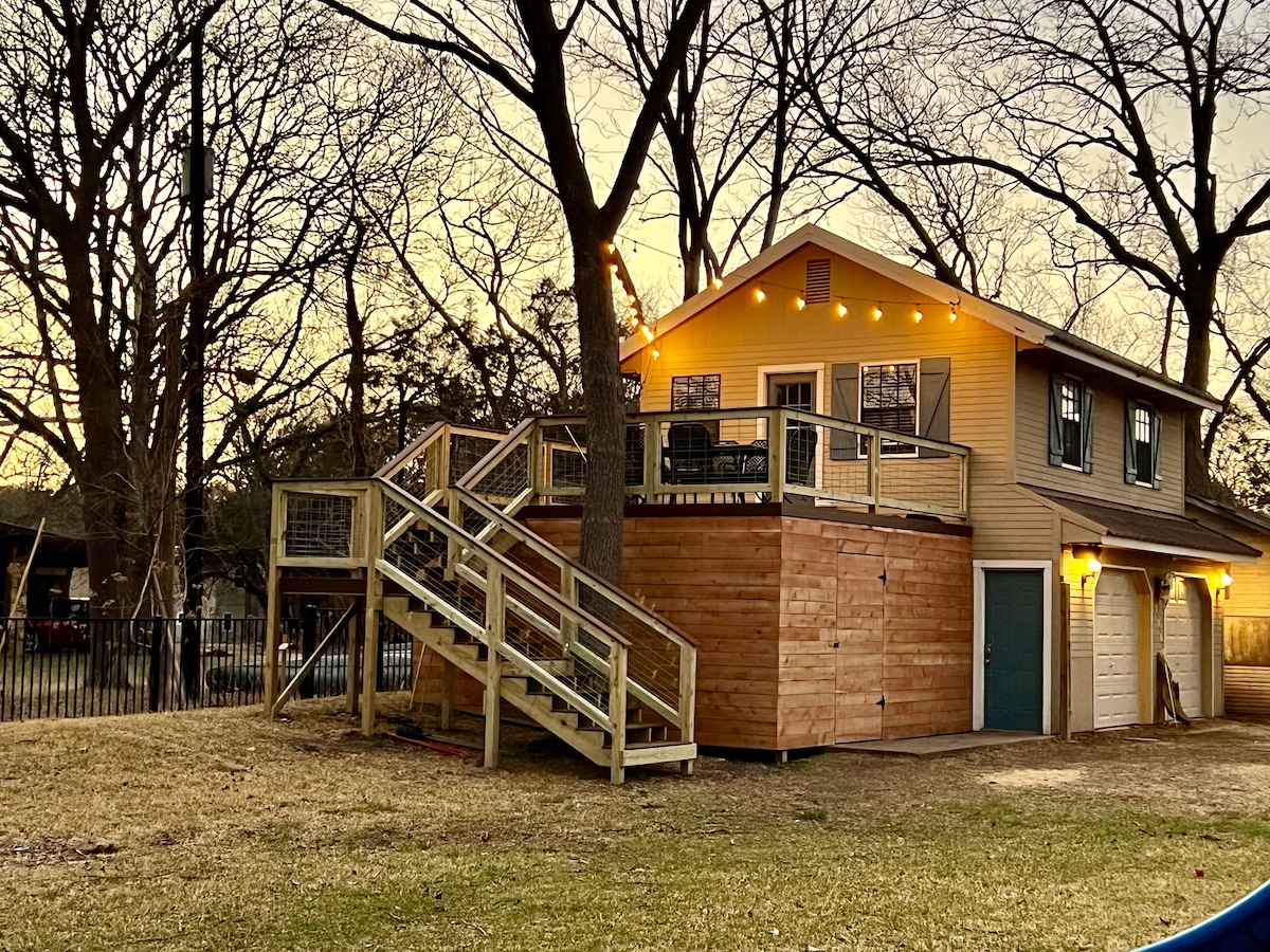 LAKE NOLTE RETREAT hosted by CTXBNB: Serene perch under the trees on the banks of the Guadalupe River in Seguin, TX. One-bedroom, riverfront tiny home with sleeping loft. Plenty of outdoor space. Relaxing views from two-level dock. FREE kayaks. Great fishing. Reconnect w/ great outdoors: fire pit, loungers, hammock chairs under a canopy of trees. Sleeps 5 (added nightly surcharge for 5th guest).