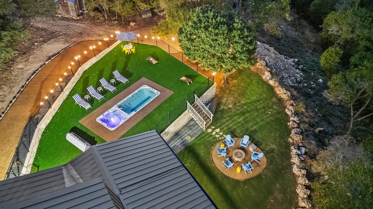 Want to feel as though you're staying in the mountains, but remain local to Texas? This is the spot for you. As you enter the property, you will drive up a hill that winds around a forestry of trees surrounding the property. At the top of the hill, you will be greeted by a modern home towering over the trees to provide an unforgettable view that overlooks rolling hills as far as you can see. It is truly a magical experience offering rest from the daily grind of normal life.