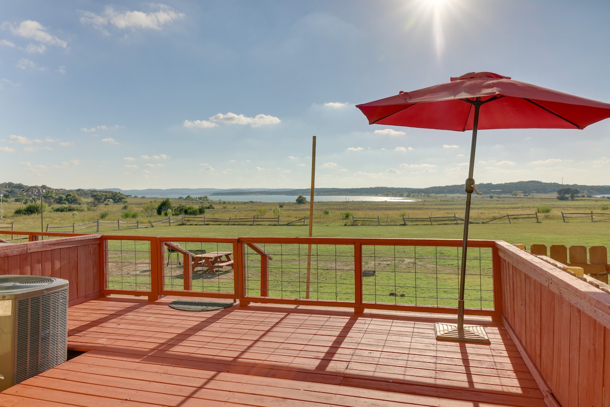 Spacious 4BR, 3.5BA lake-view retreat with hot tub, fire pit, playscape, and large open patio. Master suite downstairs with a king bed, garden tub, and shower. Upstairs: 2 queen beds + crib with ensuite, queen room with balcony, and bunk/trundle combo. Double oven kitchen, dining for 8, second fridge, sauna, foosball, office space, and kids’ books. Covered patio with grill and fireplace. Two kayaks included. Minutes from the Guadalupe River and Canyon Lake.