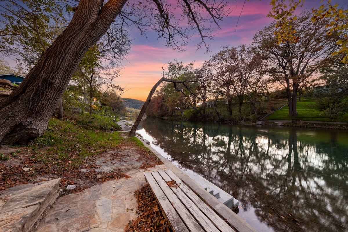 Welcome to Fluss Haus Guadalupe located on 1 acre on the beautiful Guadalupe River in the Texas Hill Country! Enjoy your own private river access right in our shady backyard, or travel just 5 mins to the Horseshoe or Canyon Lake, 20 mins to Historic Gruene, or 25 mins to Schlitterbahn in New Braunfels. This property offers a great river house (Fluss Haus) experience for those looking to relax and enjoy time with friends & family in the Texas Hill Country. Pet friendly! (2 pet limit, small fee)