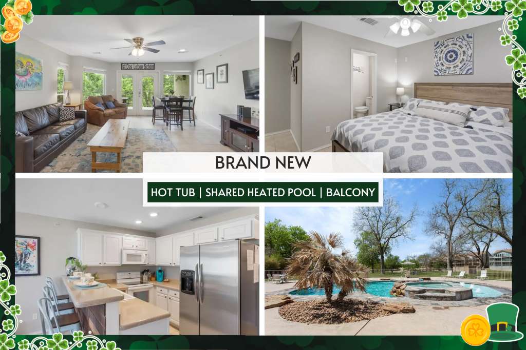 Welcome to The Wet Feet Retreat! This chic Comal riverfront condo in the heart of downtown New Braunfels offers a perfect blend of modern comfort and dreamy elegance. 2 bedrooms and 2 bathrooms, enjoy the best private river access on the Comal, a refreshing pool with river views, and easy strolls to downtown hotspots. Just steps across from Schlitterbahn waterpark and a short drive to Gruene, immerse yourself in the vibrant spirit of New Braunfels at The Wet Feet Retreat!
