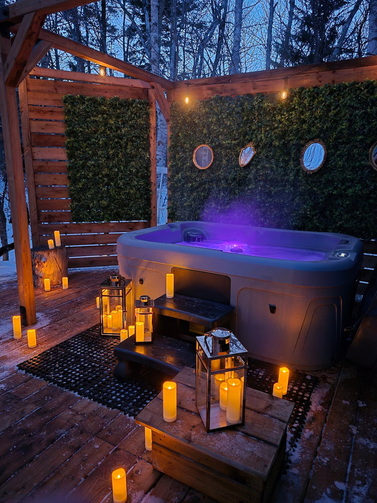 Indulge and unwind in our brand new fully loaded luxe Glamping Dome! We added a little touch of luxury, and rustic camp feel. Enjoy your stay! During your stay, you will have private access to Canada’s fanciest top-line Hot-Tub spa, the Hydro Pool Model 395 CLIMATE🌞❄️ This Dome is equipped for any sort of Canadian climate! Featuring a Mini Split for Heating/Cooling, & Heated Flooring (not in use during summer times) for those brr cold winters