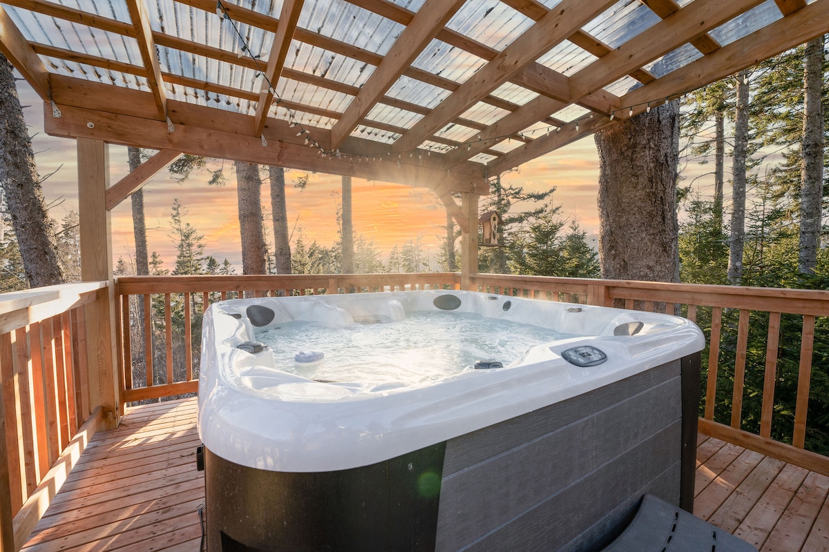 Welcome to OwlsHead. Kick back and relax in this peaceful cottage among the trees with an “Owls” view of the bay! A 5 minute walk down the hill gets you to Alma beach, and all the amazing shops and restaurants of the village. In this 2 bedroom, 1 and a 1/2 bath cottage you have beautiful outdoor and indoor living! Soak in the hot tub, dine out in the “nest” or cuddle up on the couch while the kids hang out in the loft upstairs! A perfect place for your Fundy adventures anytime of the year!