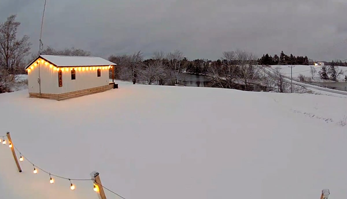 We require 24 hours notice when booking. The lodge is 15 minutes from Fredericton city limits in Noonan approximately 2 km in the woods on a private road. It runs on solar and wind power with backup generator. We offer skating, snowshoeing, hiking and boating depending on the weather. Fishing is also offered at an additional cost. There is a stand up shower and sink in the bathroom with hot and cold water as well as a toilet, a propane stove and fridge in the kitchen. Woodstoves for heat.